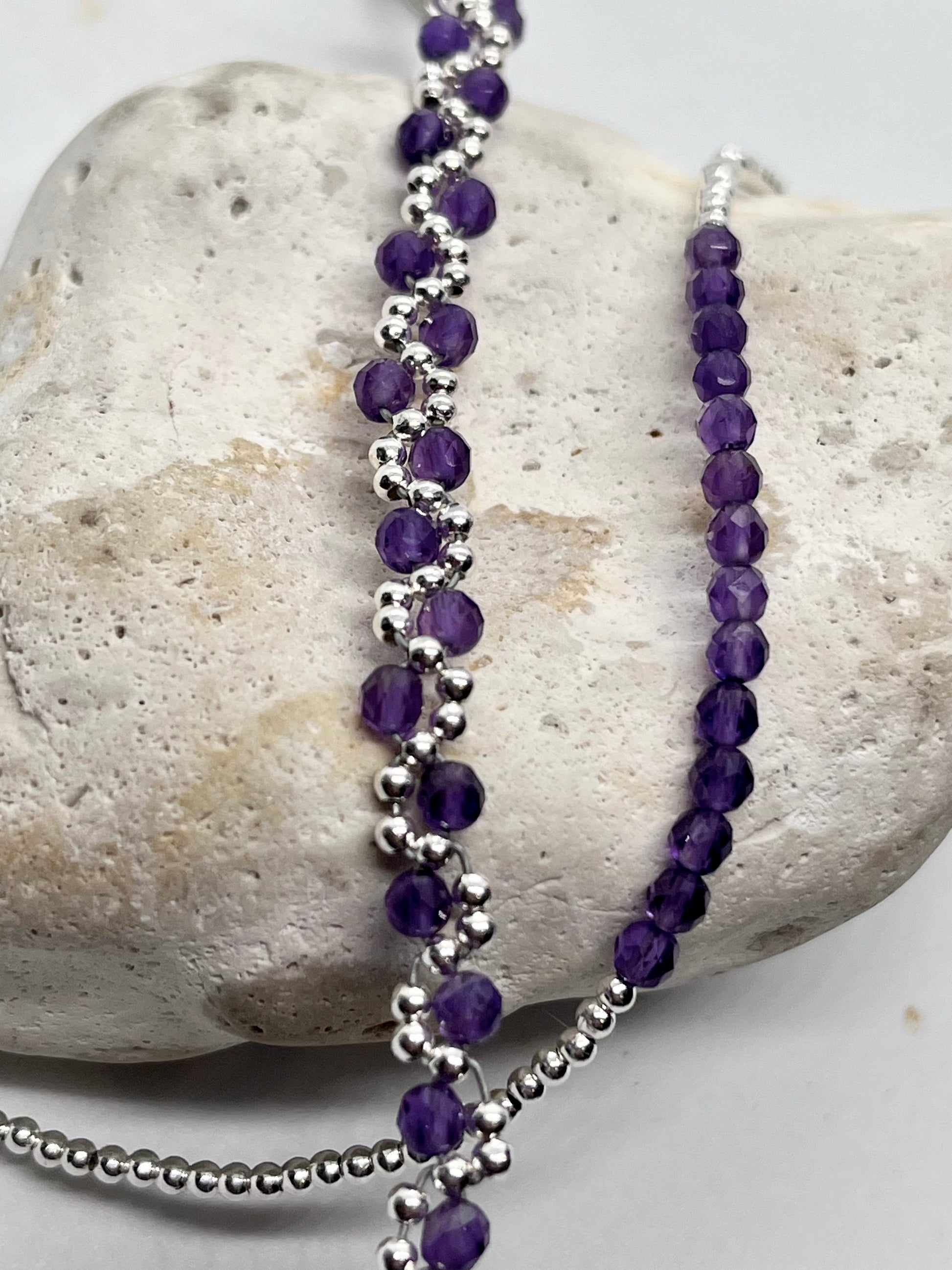 3mm genuine Amethyst beads & 925 sterling silver ball beads.