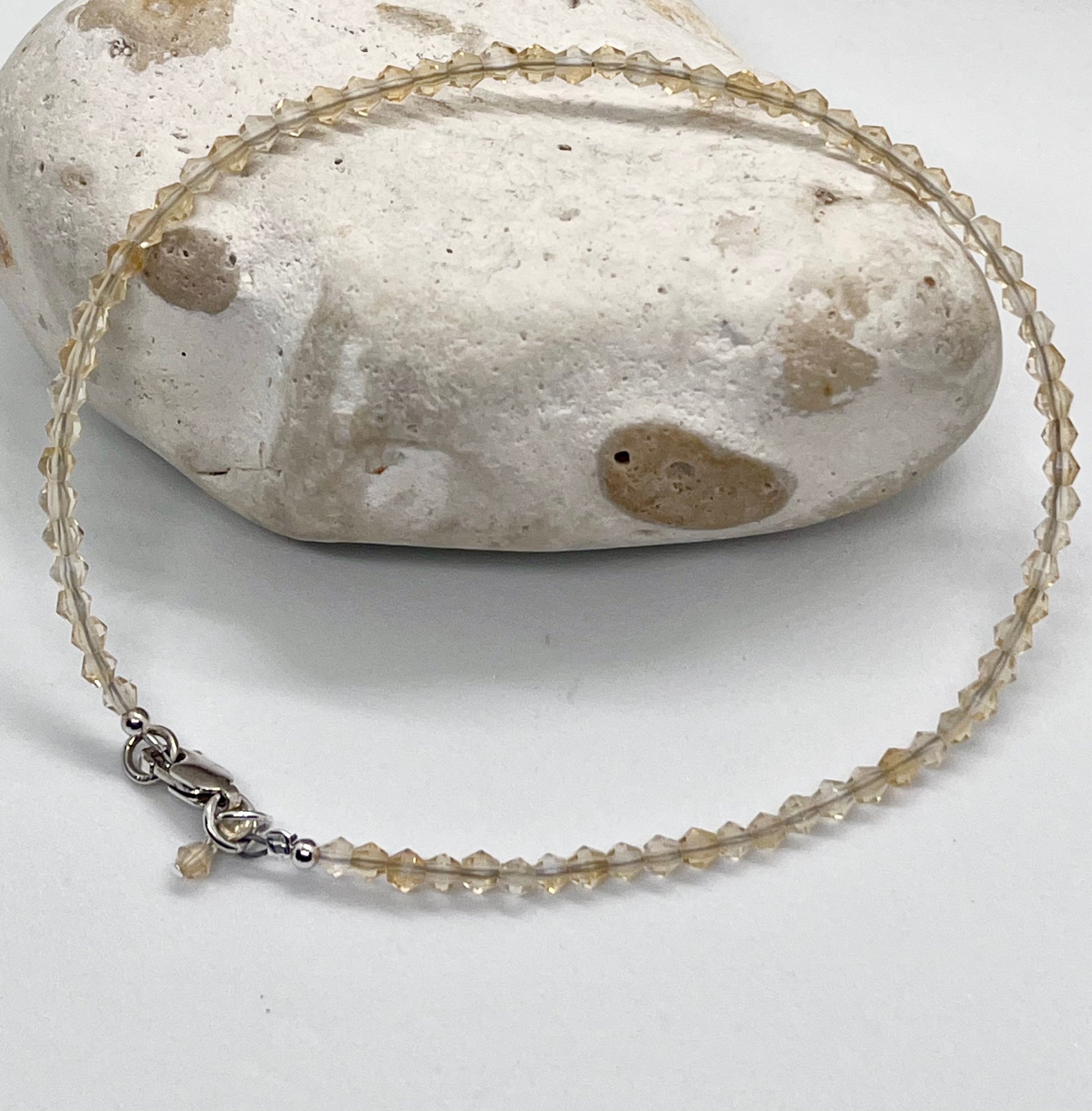 925 sterling silver 'Citrine Breeze’ genuine faceted Citrine bead anklet