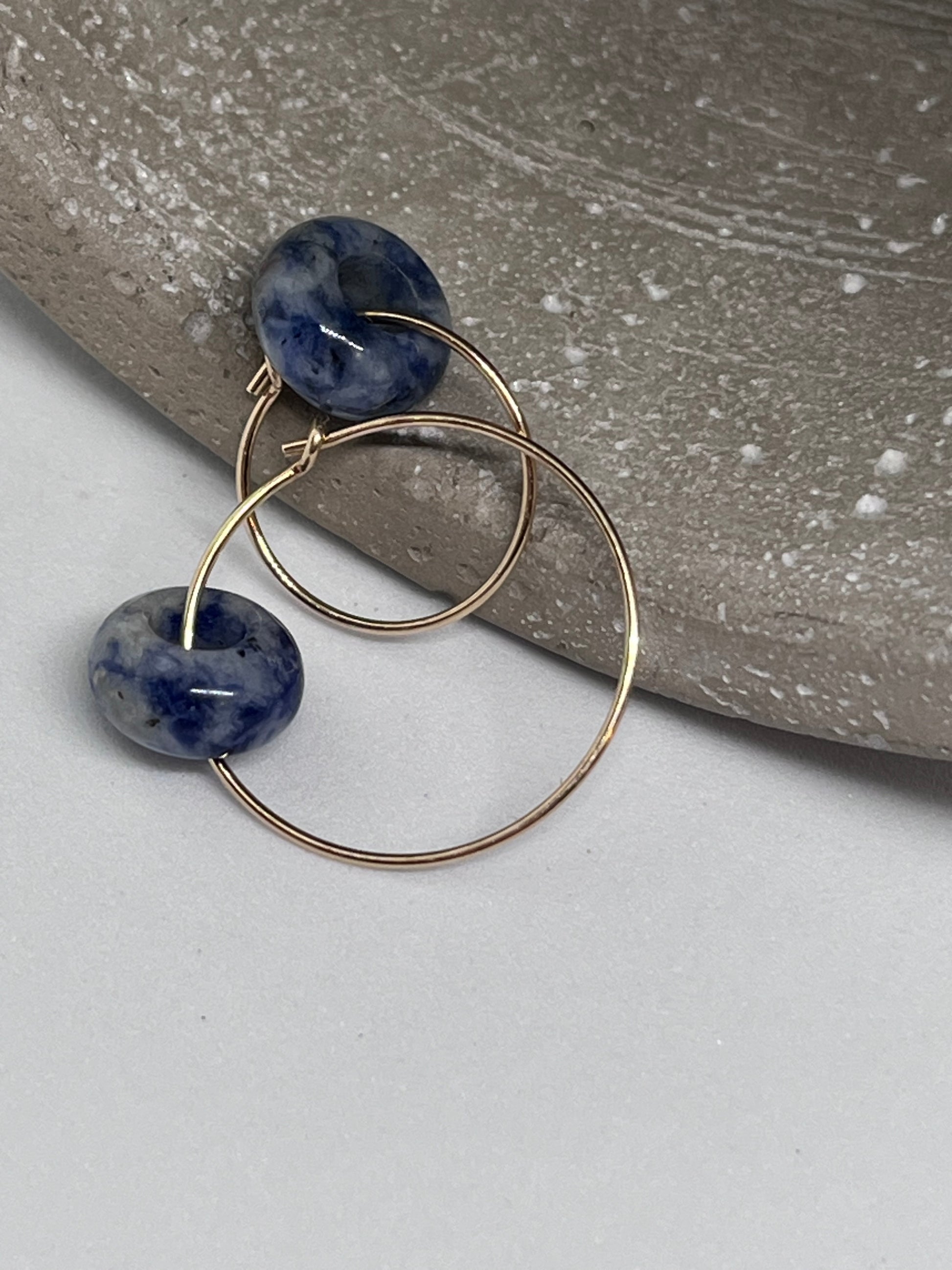 14ct Gold hoop 15mm or 25mm. Natural Blue Jasper 10mm donut. Tarnish-free.