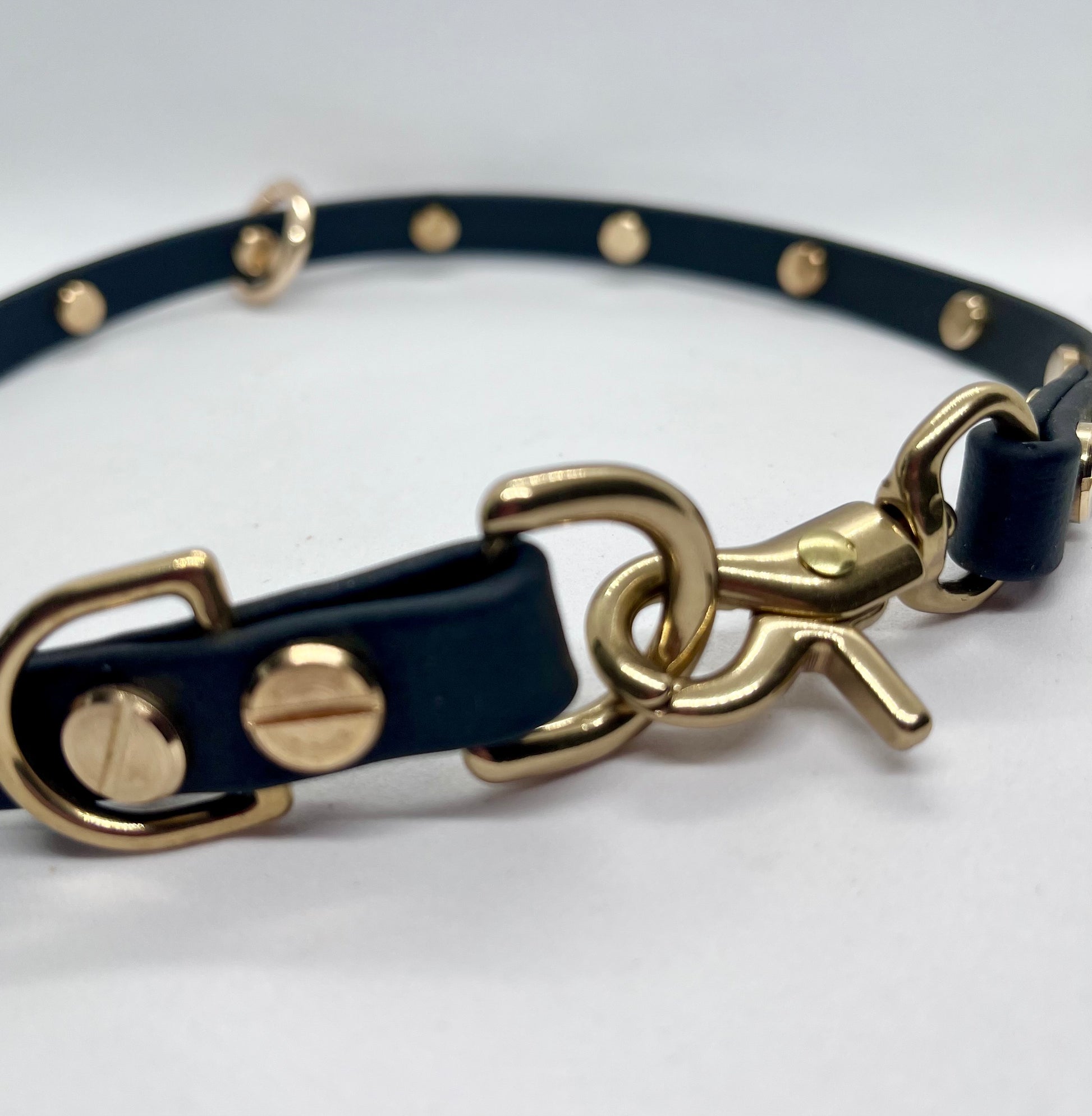 ‘Coffee Bean’ BLACK BioThane® 13mm collar & lead accessories solid brass hardware