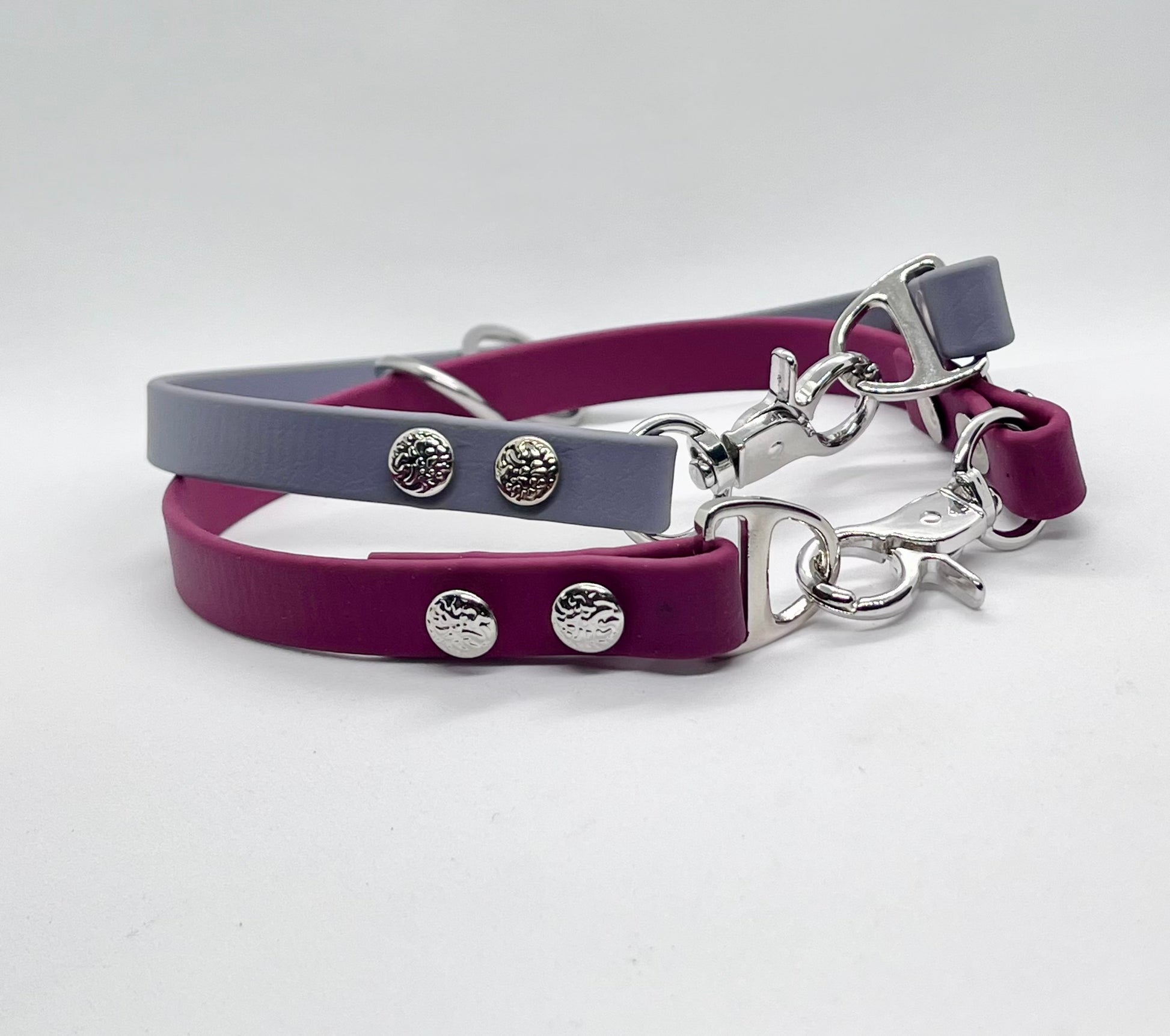Keep it simple and stylish with our ‘Just Saying’ plain BioThane® clip collar. Available in a variety of colours, it’s durable, easy to clean, and built to resist odours. It features a snap hook D-ring and a stainless steel O-ring for secure lead attachment. Plus, you can add a matching double hook lead extender for extra convenience. Perfect for keeping your furry friend looking great while out and about!